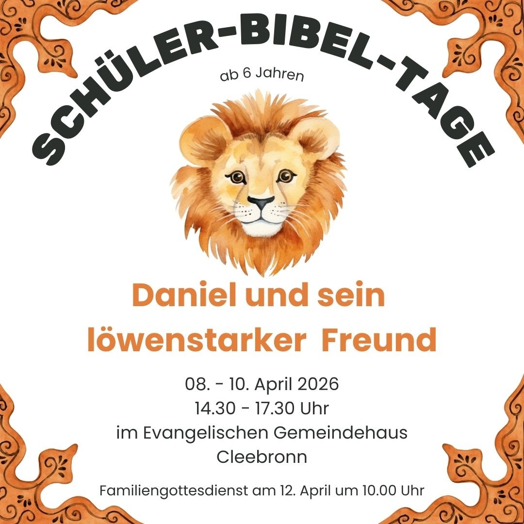 Wir beginnen um 14.30 Uhr im Evangelischen Gemeindehaus in Cleebronn. Dich erwarten Lieder, eine Geschichte sowie viele Spiele und Bastelangebote. Um 17.30 Uhr dürfen dich deine Eltern wieder abholen.
